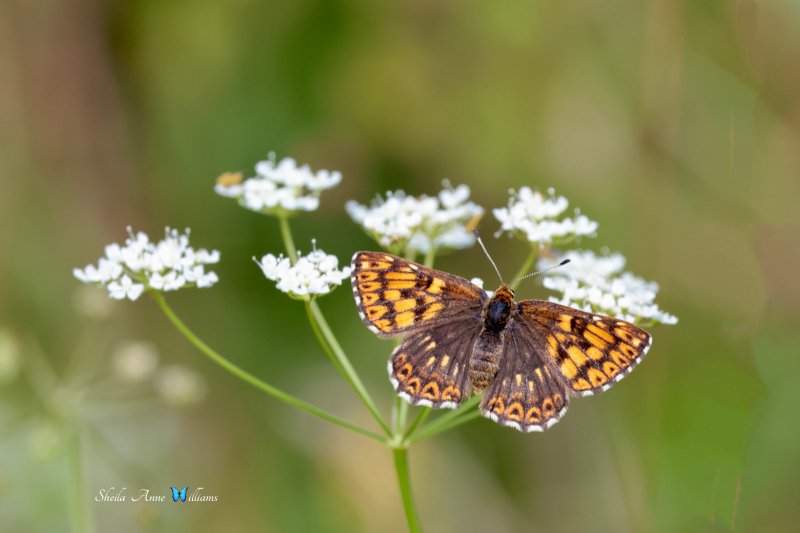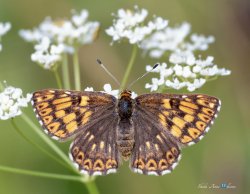 Duke of Burgundy. It sure is a crazy year for butterflies - looking for Brown Hairstreaks with my flutterby friends today and found instead a lovely fresh second brood Duke of Burgundy. [Posted by Sheila Anne Williams]