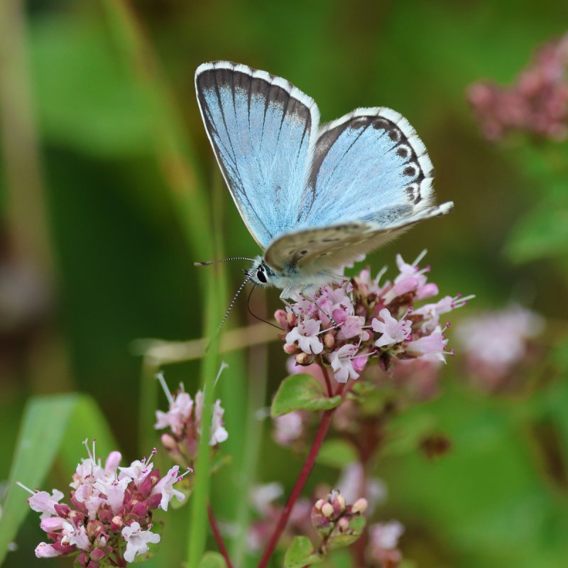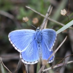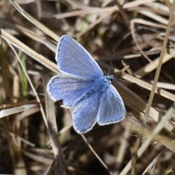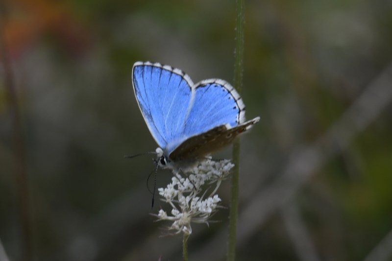 Old Winchester Hill. With thick cloud cover for most of the day, it probably wasn't the best day butterfly-wise for a walk from Exton to Old Winchester Hill and back but in the brief sunny interludes the flower covered grassland came alive, with Adonis Blue particularly prominent. Other species included Small White, Small Copper, Chalk Hill Blue, Common Blue, Gatekeeper, Meadow Brown, Speckled Wood and Small Heath. No Silver-spotted Skipper, Wall or Clouded Yellow on this occasion. A handsome Wheatear on a juniper bush on the slope beneath the hill fort demonstrated that autumn bird migration is under way. [Posted by Rupert & Sharron Broadway]