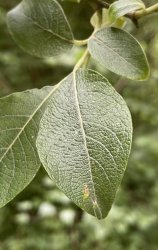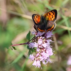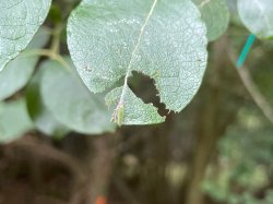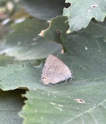 Purple Butterflies at West Wood. A trip to West Wood to check on the Purple Emperor caterpillars turned up a very late Purple Hairstreak. One caterpillar was missing in action but a new one was found on a leaf with absolutely no feeding damage. The others exhibited classic feeding patterns. [Posted by Mark Tutton]