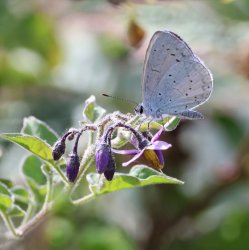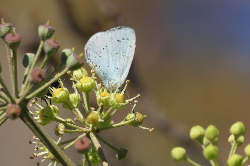 Holly Blue on Bursledon Road, Southampton. A cold but sunny morning in Southampton. It was nice to spot a Red Admiral in a sheltered area along the Shoreburs Greenway. It was a big surprise was seeing a Holly Blue on Bursledon Road - that beats my latest recorded HB by 6 days (c 2023). [Posted by Nic Burns]