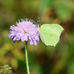 Brimstone at Magdalen Hill Down. Today's work party at the old allotments section of Magdalen Hill Down was enlivened by a male Brimstone that popped out at lunchtime, flew around just long enough for all the group to see it and then disappeared. The butterfly season is officially declared open! [Posted by Sharron and Rupert Broadway]