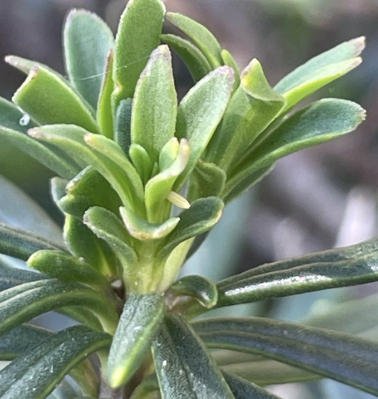 Possible Southern Small White ova. Following the discovery of Southern Small White laying eggs in Sussex I thought I would check the perennial Candytuft growing in my garden. I planted this a couple of years ago in anticipation of this butterfly arriving in the UK as it has been spreading rapidly across Europe. Sure enough I found a couple of creamy white bottle shaped eggs. Small White has been known to lay on this plant, and although the eggs are similar the caterpillars of the two species are a bit more distinctive - time will tell. [Posted by Mark Tutton]